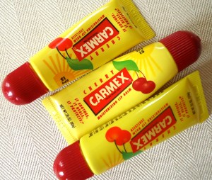 Then a typical Maine winter came. Cold, blowing, snow – and dry. The forced hot air heat in the house I was living in at the time dried me right out, it didn’t matter how much water I drank. So I trekked off to Wal-Mart and found Carmex. Not just Carmex, but CHERRY Carmex. Was this Heaven?