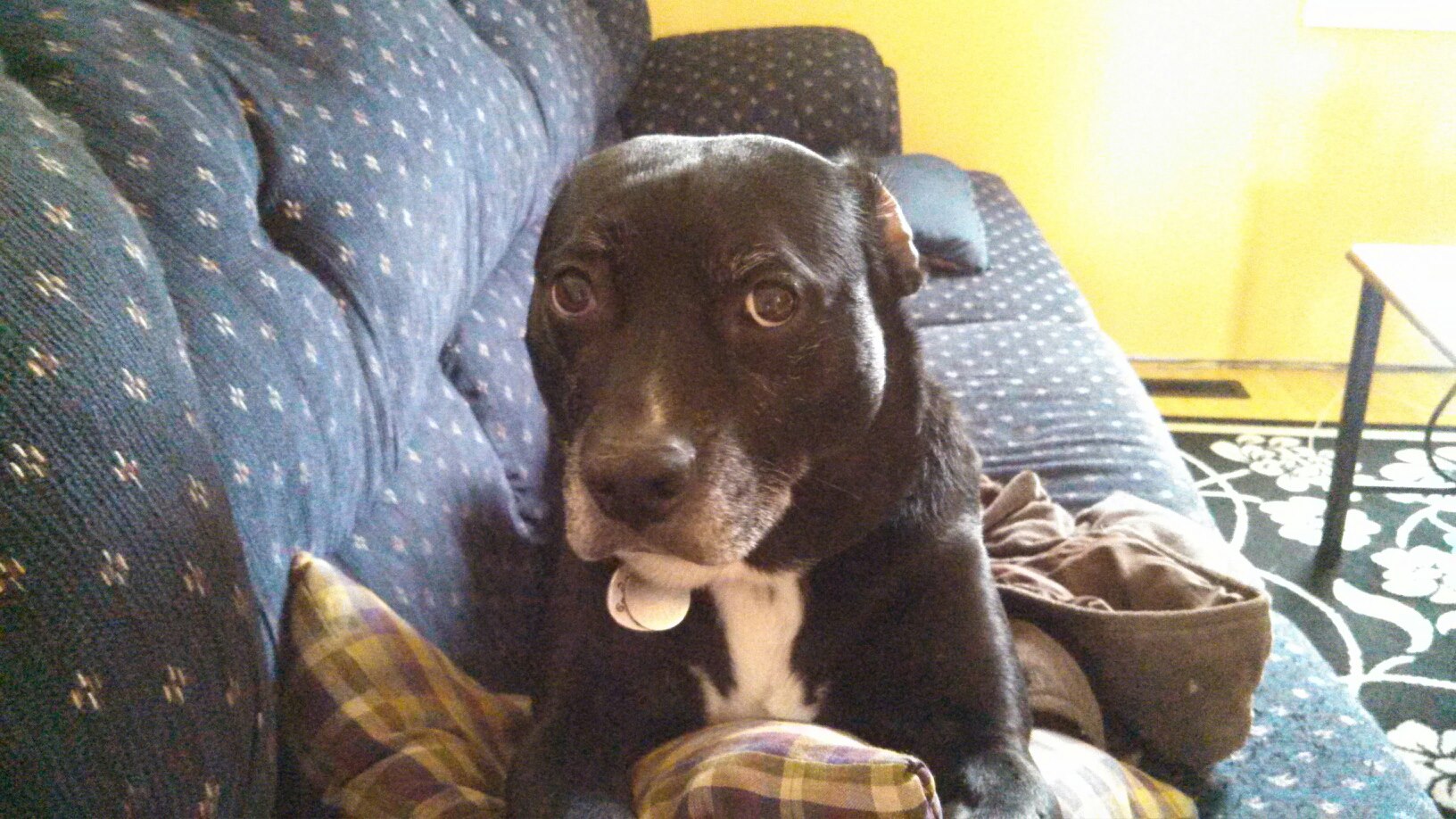 It looked like it snowed it my living room. The couch had exploded. Or at least that’s what it looked like. Dunkin had mauled both of the large back pillow/cushions on the love seat. After assessing the damages, I got down to his level, stared him down and saw the mischievous glint in his happy brown eyes.