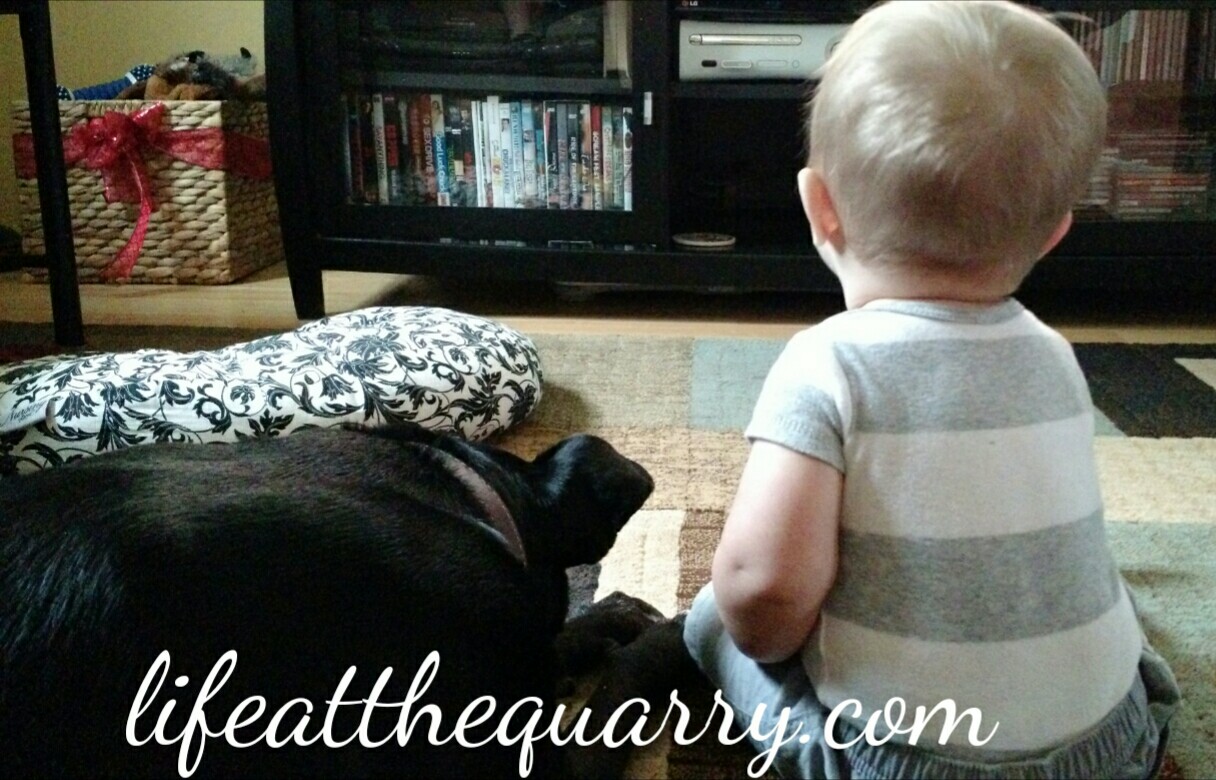 When I would lay the baby on the floor, Dunkin never strayed far. Keeping a watchful eye on him.