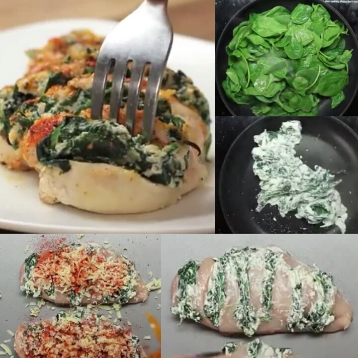The other day, she posted one of those quick-flashing video recipes that had spinach, ricotta, chicken, cheese and paprika… It looked quick and simple to prep, and delicious to eat.